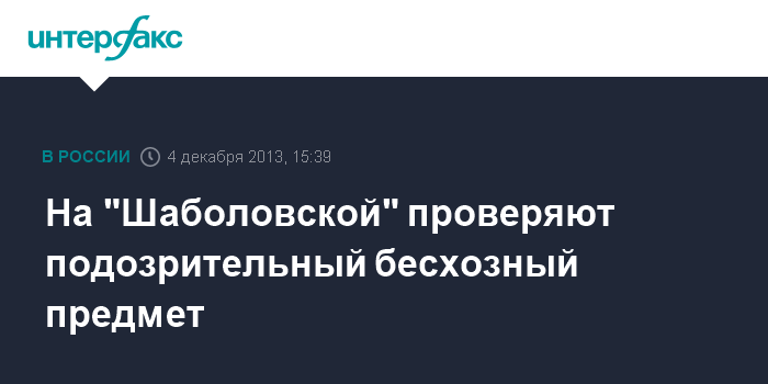 "На станции метро "Шаболовская" обнаружен бесхозный подозрительный предмет. Сотрудники полиции проводят проверку", - сказал сотрудник пресс-службы.