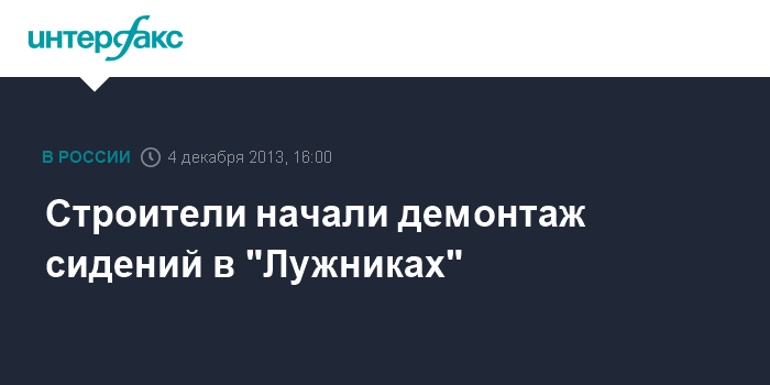 Москва. 4 декабря. INTERFAX.RU - Строители начали демонтаж сидений на стадионе в Лужниках для подготовки к разбору бетонных конструкций трибун стадиона, заявил на пресс-конференции в среду руководитель департамента строительства города Москвы Андрей Бочкарев.
