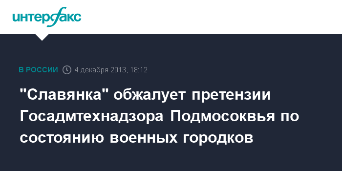 "Славянка" обжалует претензии Госадмтехнадзора Подмосоквья по состоянию военных городков