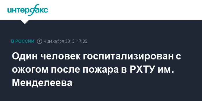 Москва. 4 декабря. INTERFAX.RU - Один человек госпитализирован в результате пожара в РХТУ им. Менделеева.