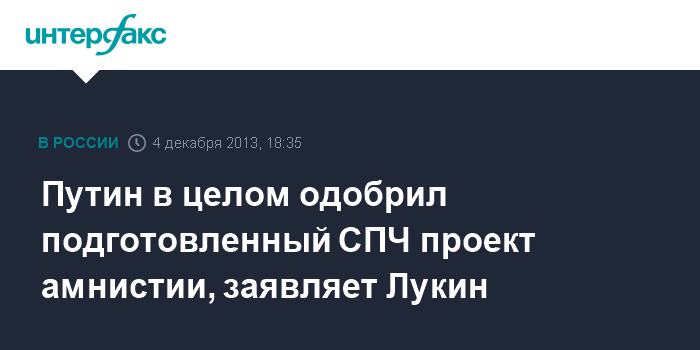Путин в целом одобрил подготовленный СПЧ проект амнистии, заявляет Лукин