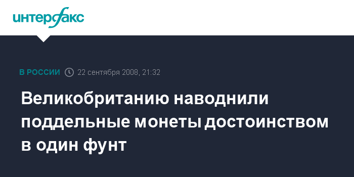 Москва. 22 сентября. INTERFAX.RU - Каждая пятидесятая британская монета достоинством в один фунт стерлингов может быть подделкой, сообщает в понедельник британская "Guardian".