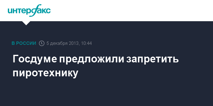 Москва. 5 декабря. INTERFAX.RU - Калужские законодатели внесли в Госдуму законопроект, позволяющий полностью запретить использование пиротехники.