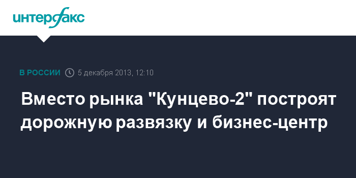 Вместо рынка "Кунцево-2" построят дорожную развязку и бизнес-центр