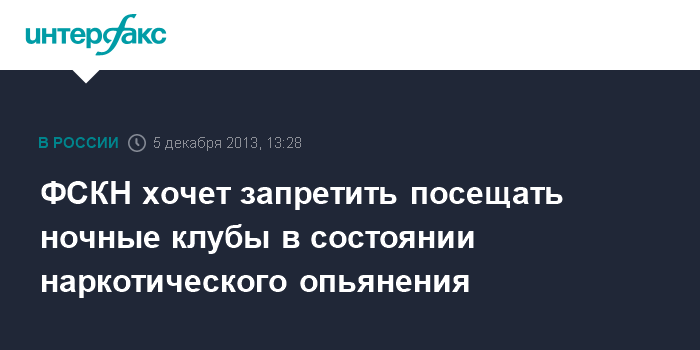 Москва. 5 декабря. INTERFAX.RU - Федеральная служба по контролю за оборотом наркотиков работает над законопроектом, запрещающим людям в состоянии наркотического опьянения посещать ночные клубы.