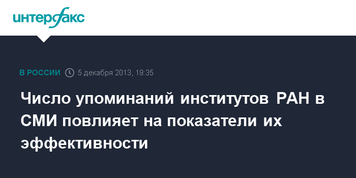 Москва. 5 декабря. INTERFAX.RU - Минобрнауки РФ предлагает учитывать положительные и нейтральные упоминания в СМИ об институтах РАН в качестве одного из критериев их эффективности.