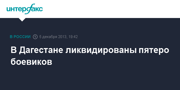 Махачкала. 5 декабря. INTERFAX.RU - В окрестностях селения Новый Костек Хасавюртовского района Дагестана при оказании вооруженного сопротивления убиты пятеро боевиков.