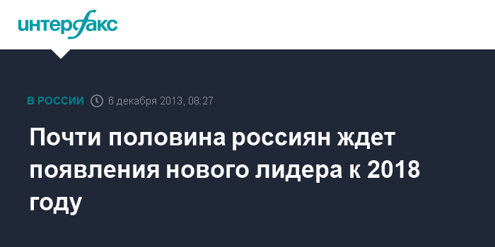 Москва. 6 декабря. INTERFAX.RU - 45% россиян прогнозируют появление к 2018 году в стране нового лидера, способного заменить Владимира Путина на посту президента.