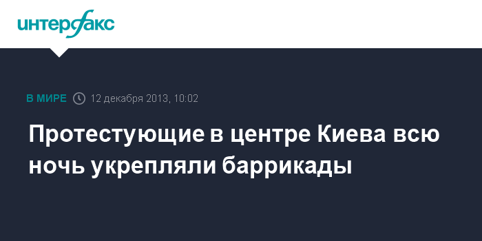 Киев. 12 декабря. INTERFAX.RU - Первую ночь после попытки штурма правоохранителями "евромайдана" митингующие на майдане Независимости провели, сооружая новые и укрепляя ранее возведенные баррикады, а также принимая пополнение от "майдановцев" из других областей Украины.