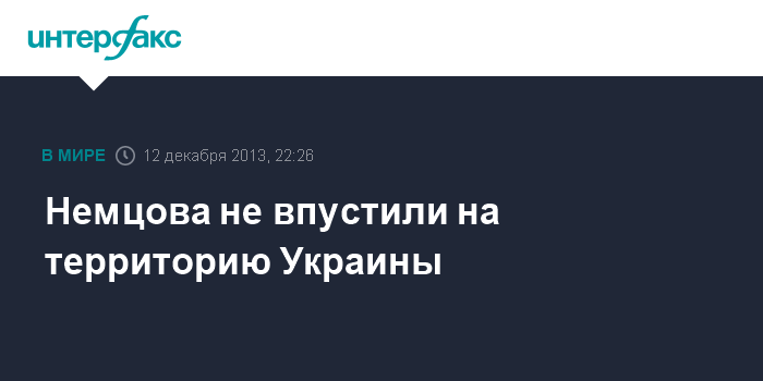Киев. 12 декабря. INTERFAX.RU - Служба Безопасности Украины запретила въезд в страну бывшему вице-премьеру РФ, депутату Ярославской областной думы Борису Немцову, сообщил в эфире онлайнового "Громадського ТВ" сам политик. В Госпогранслужбе Украины агентству "Интерфакс-Украина" подтвердили факт непропуска через госграницу Немцова.