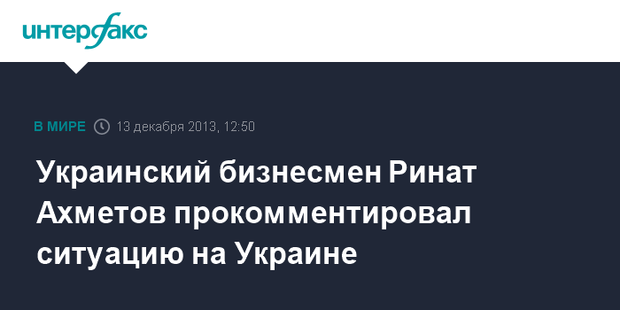 Киев. 13 декабря. INTERFAX.RU - Украинский бизнесмен Ринат Ахметов в пятницу выступил с заявлением о ситуации в стране.