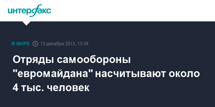 Киев. 13 декабря. INTERFAX.RU - Отряды самообороны "евромайдана" насчитывают 4 тыс. человек, заявляет руководитель комендатуры отряда самообороны майдана Андрей Левус.