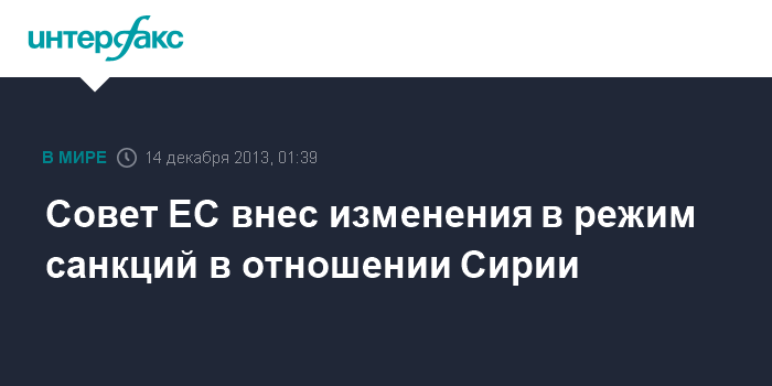 Совет ЕС внес изменения в режим санкций в отношении Сирии