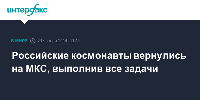 "Выход успешно завершен. Космонавты вернулись на борт станции", - сказал собеседник агентства.