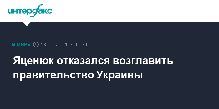 Как сообщается в заявлении министра юстиции, члена рабочей группы Елены Лукаш по результатам очередного раунда переговоров, обнародованном на сайте президента Украины в ночь на вторник, лидер парламентской фракции "Батькивщина" Арсений Яценюк возглавить правительство Украины согласия не дал. Переговоры будут продолжены.