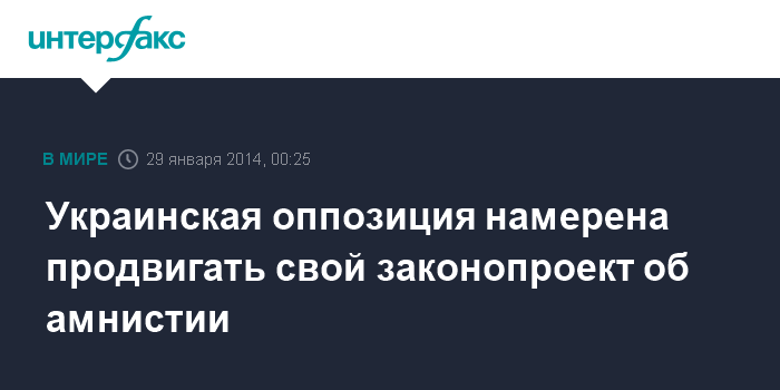 Киев. 29 января. INTERFAX.RU - Лидер Всеукраинского объединения "Свобода" Олег Тягнибок заявляет, что оппозиция намерена работать над тем, чтобы в парламенте был проголосован ее законопроект об амнистии участников акций протеста в Украине.