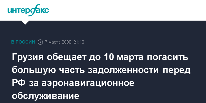 Грузия обещает до 10 марта погасить большую часть задолженности перед РФ за аэронавигационное обслуживание