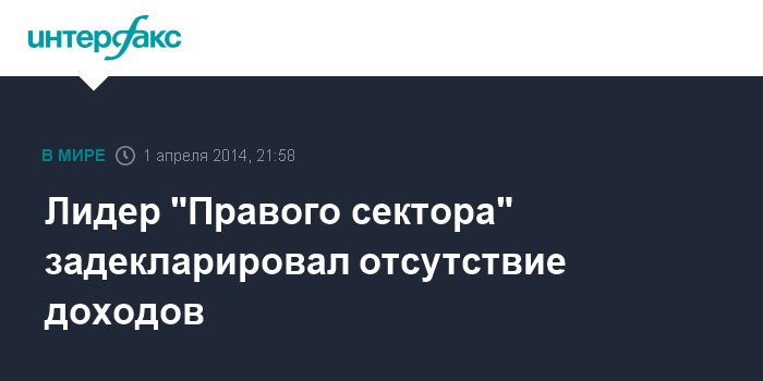 Москва. 1 апреля. INTERFAX.RU - Лидер радикальной партии "Правый сектор", кандидат в президенты Украины Дмитрий Ярош в 2013 году задекларировал отсутствие доходов.