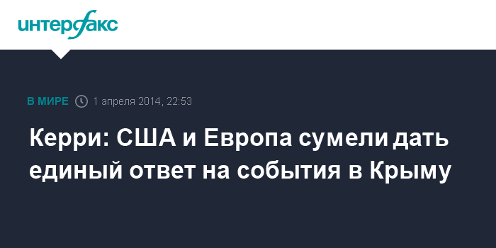 Москва. 1 апреля. INTERFAX.RU - Страны Европы и Северной Америки сумели дать единый ответ на события в Крыму, заявил во вторник госсекретарь США Джон Керри.