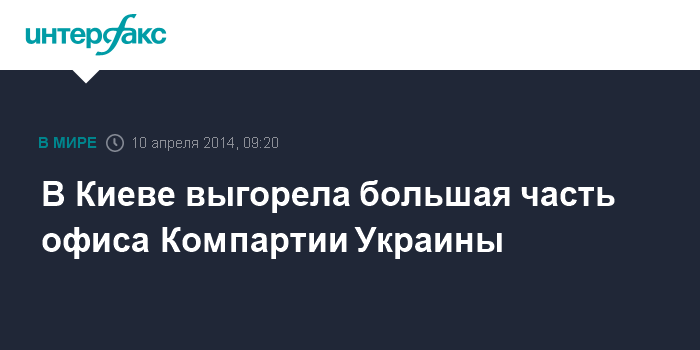 Москва. 10 апреля. INTERFAX.RU - В результате пожара в офисе Компартии Украины в Киеве на улице Борисоглебской повреждено помещение подвала, первого и второго этажей здания на общей площади 220 кв. метров.