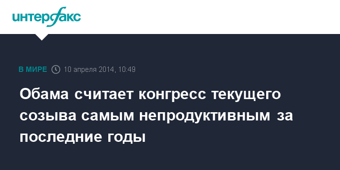 Москва. 10 апреля. INTERFAX.RU - Президент США Барак Обама назвал конгресс текущего созыва наименее эффективным в современной истории страны.