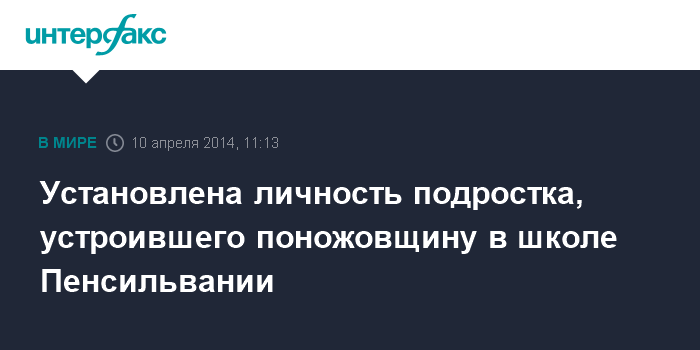 Москва. 10 апреля. INTERFAX.RU - Полиция США установила личность 16-летнего подростка, устроившего резню в школе Пенсильвании. Им оказался Алекс Хрибал из учебного заведения города Мэррисвилл под Питтсбургом, сообщает CNN.