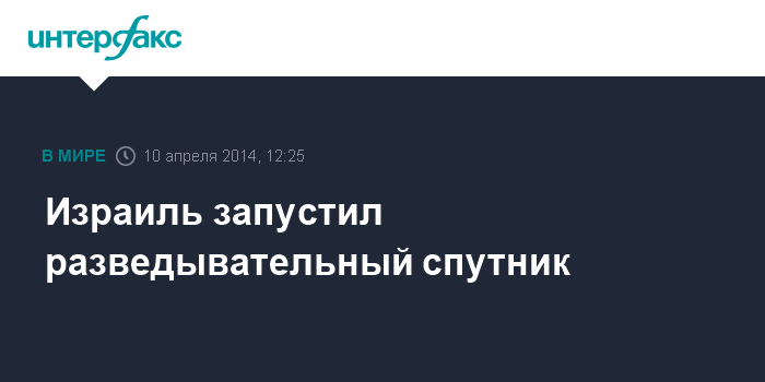 Москва. 10 апреля. INTERFAX.RU - Израильские специалисты провели успешный запуск и вывод на орбиту разведывательного спутника, сообщает в четверг газета Haaretz.