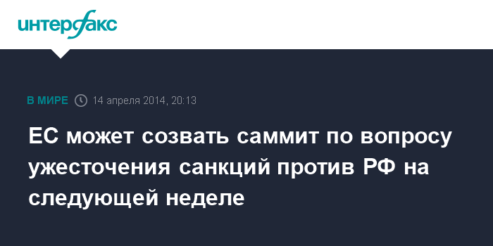 ЕС может созвать саммит по вопросу ужесточения санкций против РФ на следующей неделе