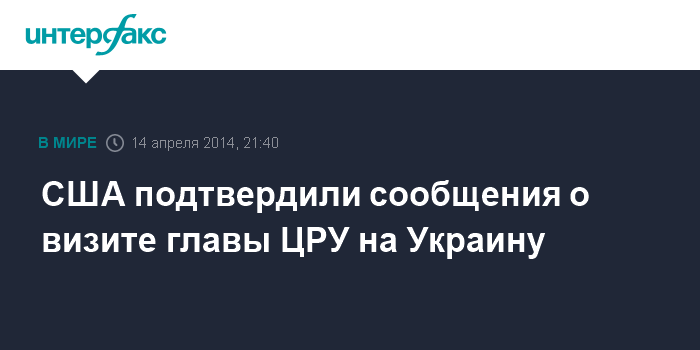 Вашингтон. 14 апреля. INTERFAX.RU - Представитель Белого дома США Джей Карни подтвердил информацию о том, что руководитель Центрального разведывательного управления (ЦРУ) Джон Бреннан посетил Киев в минувшие выходные.