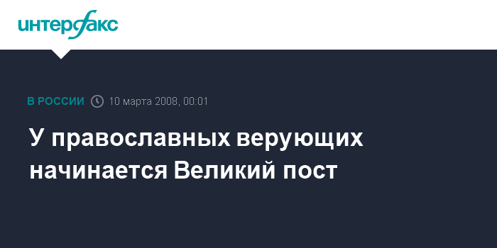 Москва. 10 марта. ИНТЕРФАКС - Православные верующие вступают в период самого строгого - Великого - поста. Он продлится семь недель и завершится перед Пасхой, которая в этом году приходится на 27 апреля.