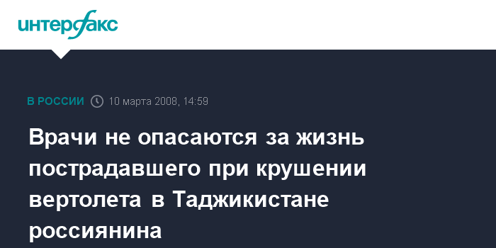 Врачи не опасаются за жизнь пострадавшего при крушении вертолета в Таджикистане россиянина
