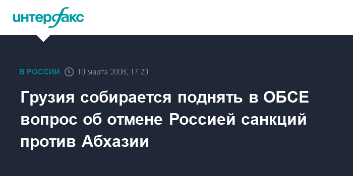Тбилиси. 10 марта. ИНТЕРФАКС - Грузинская сторона намерена на этой неделе поставить на заседании постоянного Совета ОБСЕ вопрос о решении российского руководства по односторонней отмене экономических санкций против Абхазии, введенных в 1996 году решением глав СНГ.