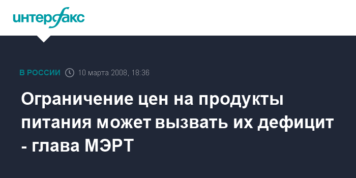 Ограничение цен на продукты питания может вызвать их дефицит - глава МЭРТ