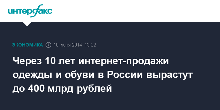 Через 10 лет интернет-продажи одежды и обуви в России вырастут до 400 млрд рублей