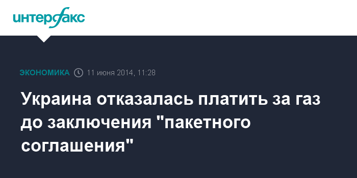 Украина отказалась платить за газ до заключения "пакетного соглашения"