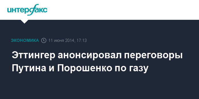 Москва. 11 июня. INTERFAX.RU - Президент России Владимир Путин и его украинский коллега Петр Порошенко в среду начнут переговоры по газовому вопросу, сообщил еврокомиссар по энергетике Гюнтер Эттингер.