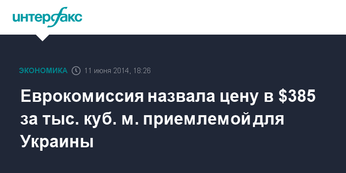 Еврокомиссия назвала цену в $385 за тыс. куб. м. приемлемой для Украины