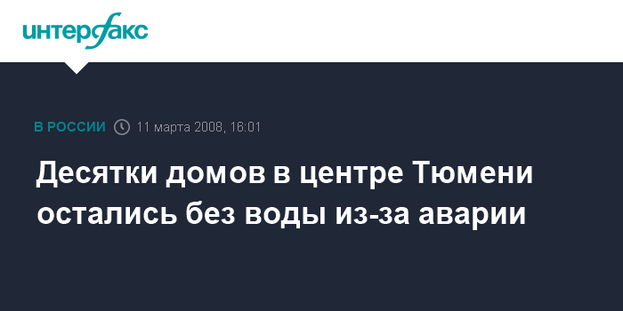 Тюмень. 11 марта. INTERFAX.RU - Около 30 многоквартирных домов в центре Тюмени второй день отключены от водоснабжения из-за аварии.
