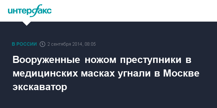 Вооруженные ножом преступники в медицинских масках угнали в Москве экскаватор
