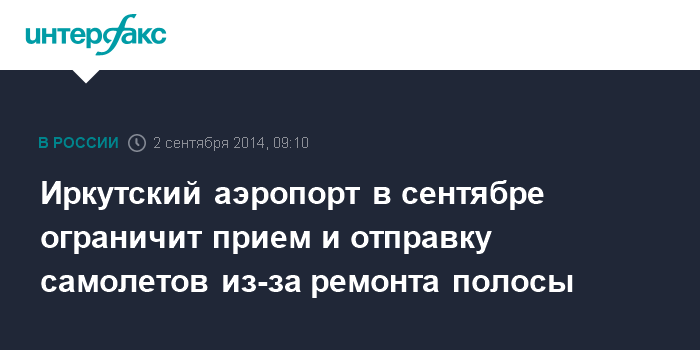 Москва. 2 сентября. INTERFAX.RU - Международный аэропорт "Иркутск" с 4 по 27 сентября вводит ограничение на прием и отправку лайнеров в связи с ремонтом полосы, сообщает пресс-служба аэропорта во вторник.