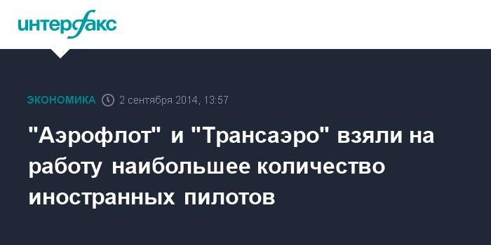 Москва. 2 сентября. INTERFAX.RU - "Аэрофлот" принял на работу наибольшее количество иностранных пилотов, следует из сообщения Росавиации.