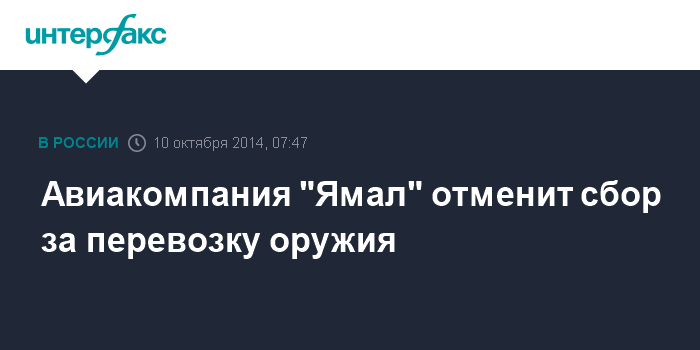 Авиакомпания "Ямал" отменит сбор за перевозку оружия