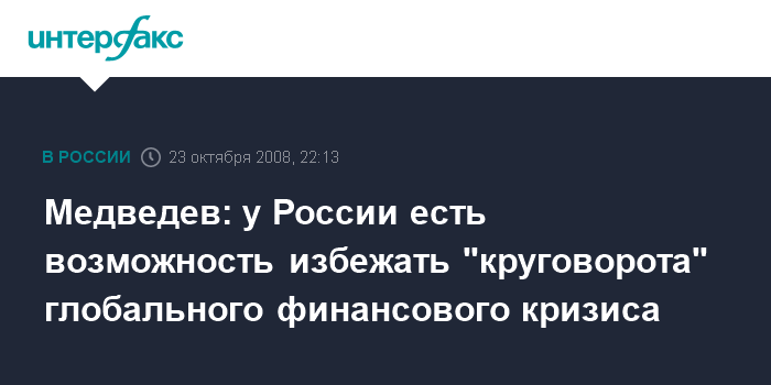 Медведев: у России есть возможность избежать "круговорота" глобального финансового кризиса