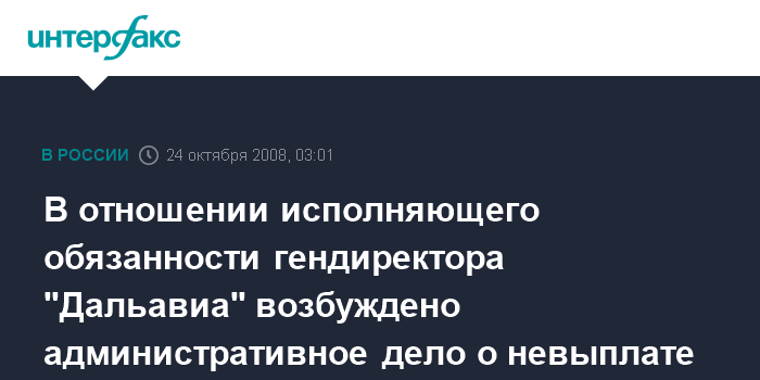 В отношении исполняющего обязанности гендиректора "Дальавиа" возбуждено административное дело о невыплате зарплаты