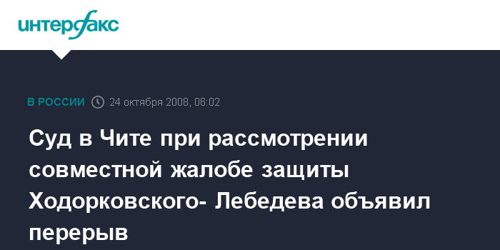 Суд в Чите при рассмотрении совместной жалобе защиты Ходорковского- Лебедева объявил перерыв