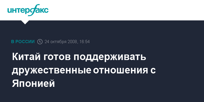 Пекин. 24 октября. INTERFAX.RU - Китайское руководство намерено продолжать политику по поддержанию дружественных отношений между Китаем и Японией, говорится в заявлении премьера Госсовета КНР Вэнь Цзябао, опубликованном на официальном веб-сайте МИД КНР.