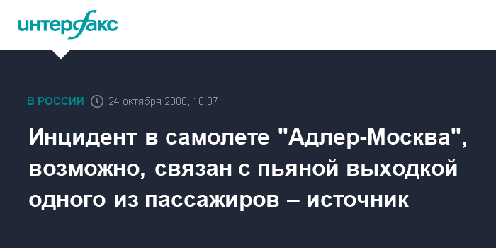 Инцидент в самолете "Адлер-Москва", возможно, связан с пьяной выходкой одного из пассажиров – источник