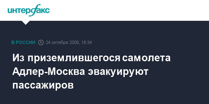 Москва. 24 октября. INTERFAX.RU - В настоящее время из самолета Адлер-Москва, приземлившегося во Внуково, проводится эвакуация пассажиров, сообщил представитель ФСБ РФ.