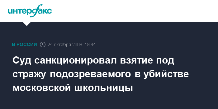 Москва. 24 октября. INTERFAX.RU - Замоскворецкий суд Москвы выдал санкцию на арест подозреваемого в убийстве 15-летней московской школьницы Анны Бешновой.