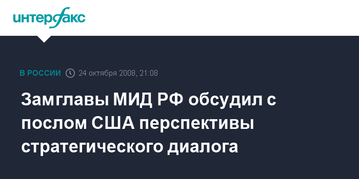 Замглавы МИД РФ обсудил с послом США перспективы стратегического диалога